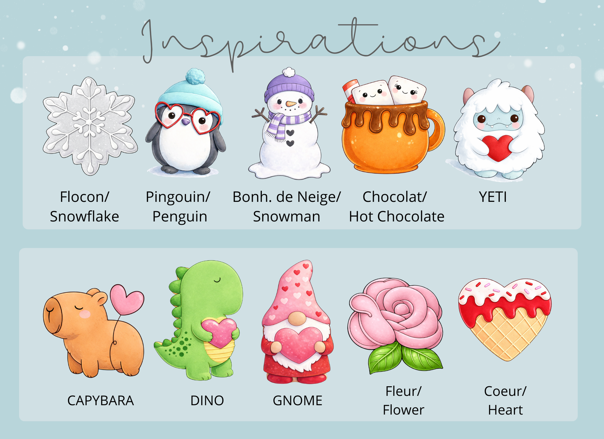 - 6 biscuits sablés : Sélectionnez vos formes préférées parmi les choix disponibles. Si vous souhaitez recevoir plusieurs fois la même forme ou avez des demandes spécifiques, utilisez le champ "Note supplémentaire" (ex. : "3 licornes et 3 fusées").